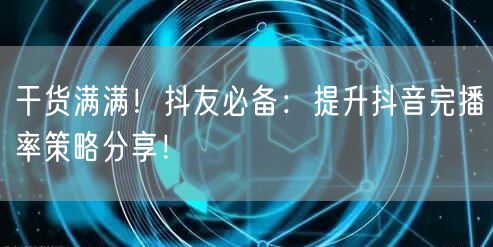 标题:干货满满!抖友必备:提升抖音完播率策略分享!